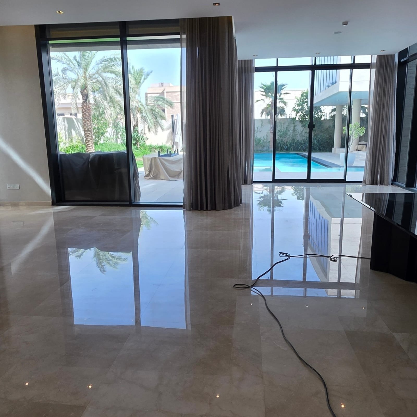 2- ثانيًا، لأنها تعي أن الرخام ليس مجرد مادة أرضية، بل عنصر جمالي يستحق العناية الرفيعة، ولذلك لا تستخدم حلولًا سطحية بل حلولاً ذات عمق تقني.