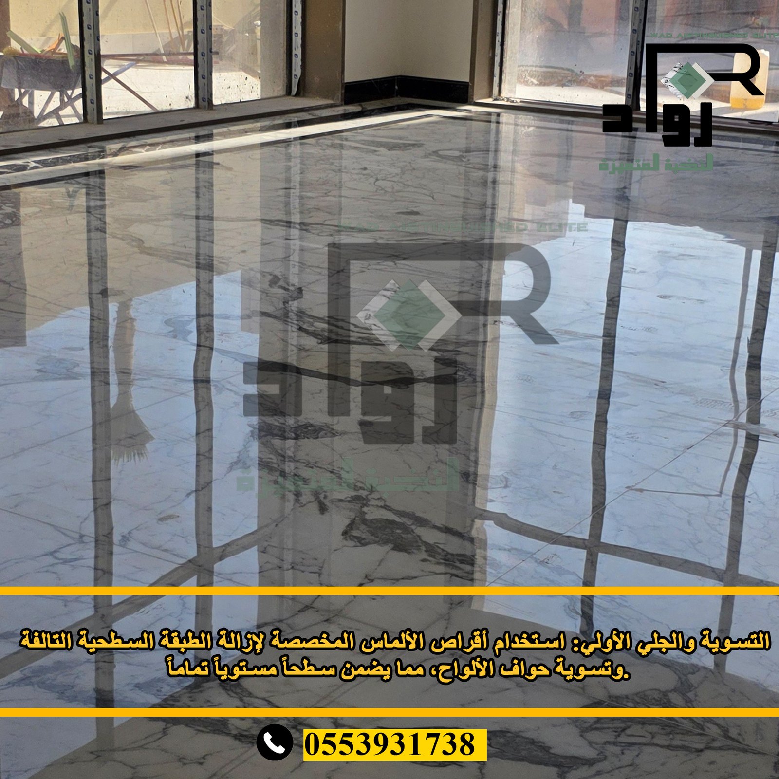| الفحص والتقييم | تحديد الوضع الحالي للرخام | فني متخصص + أدوات قياس |