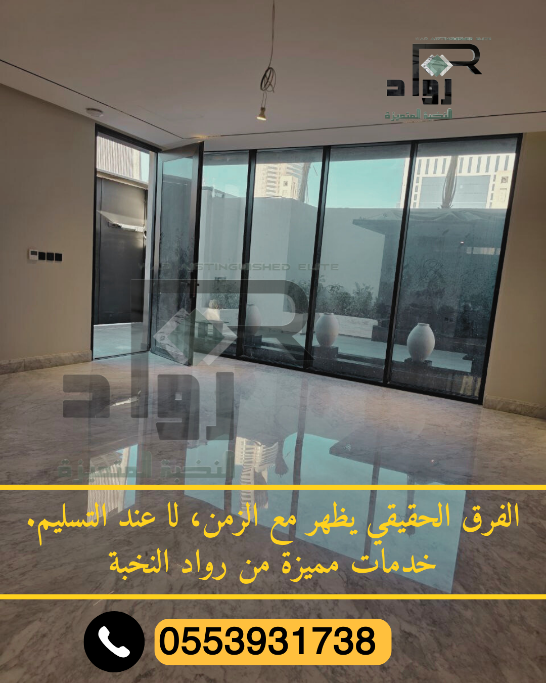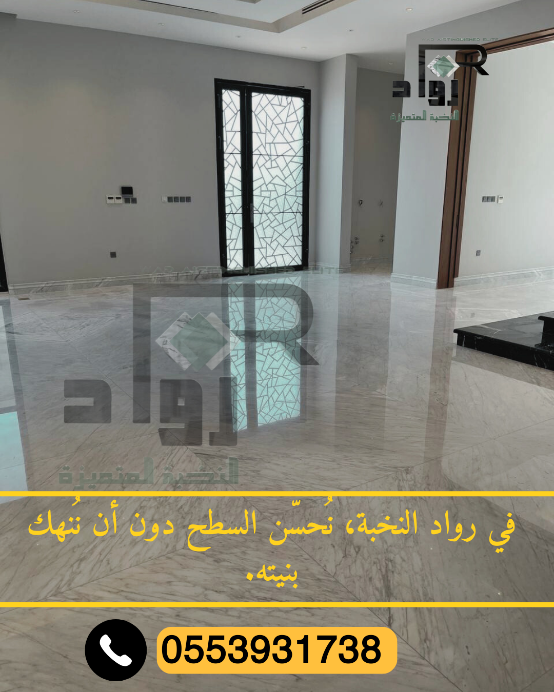 باستخدام تقنيات حديثة، فريق محترف، وباقات أسعار واضحة — تأخذ الأرضية القديمة وتعيدها كأنها جديدة. لا تدع بهتان الرخام يقلّل من جمال منزلك، تواصل مع شركة رواد النخبة اليوم للحصول على استشارة مجانية وعرض خدمة يناسب احتياجاتك.