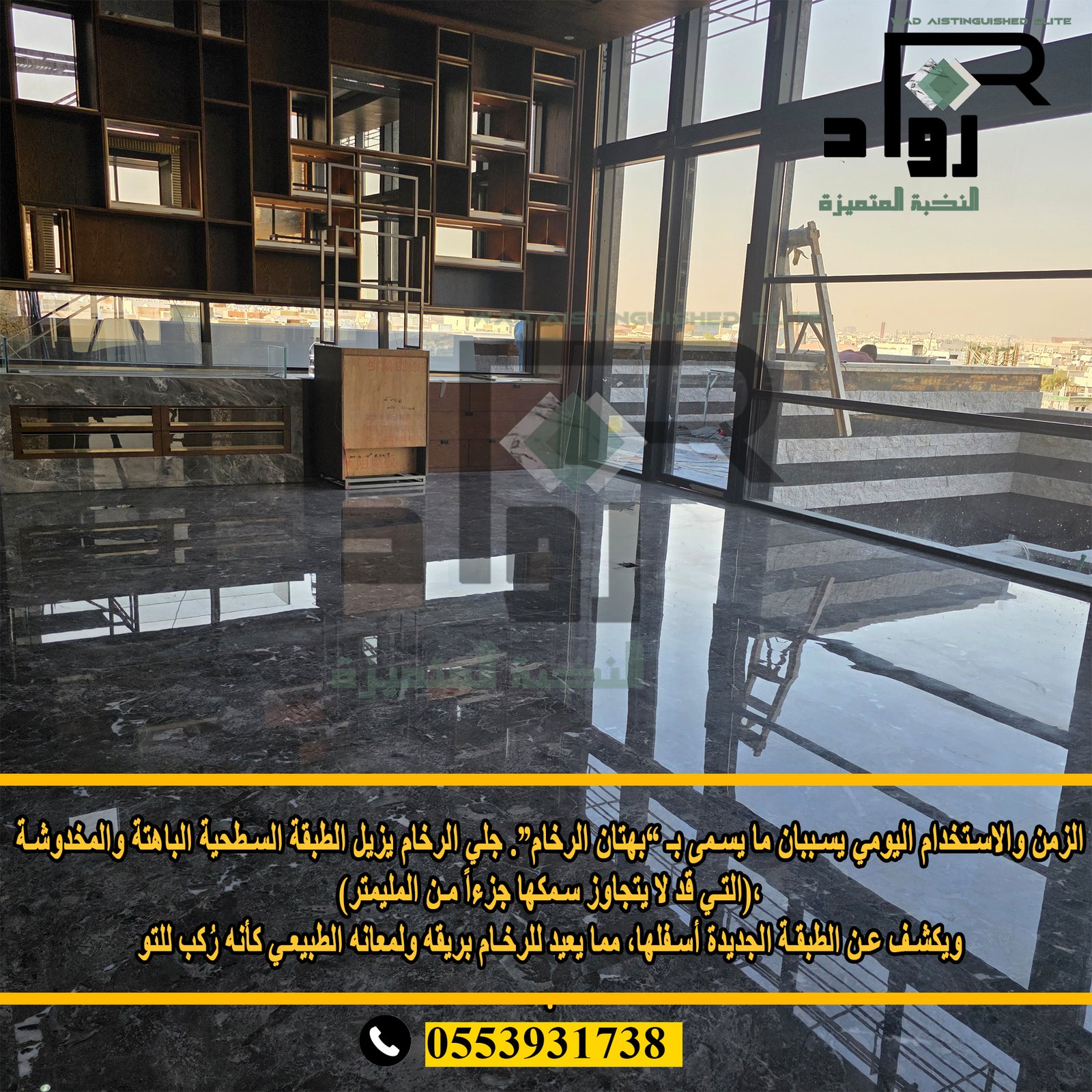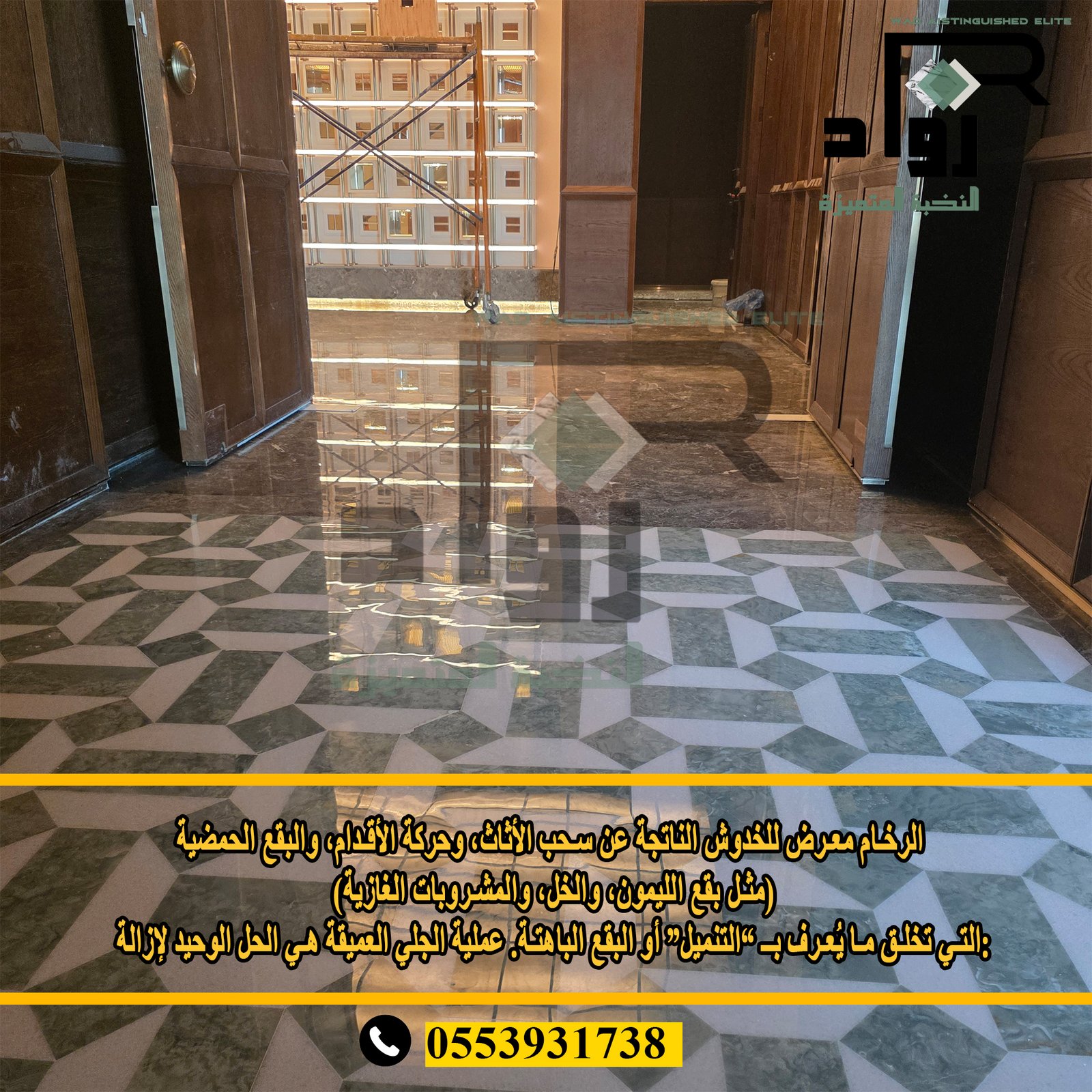 📋 مراحل تلميع الرخام مع شركة رواد النخبة