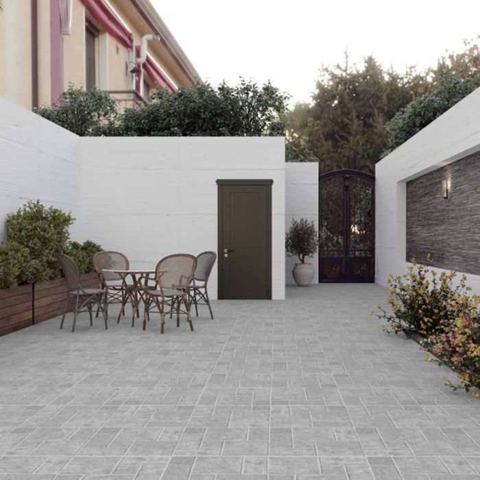 لا يقتصر الاهتمام على البلاط الداخلي فقط؛ بل يشمل بلاط الحوش والممرات الخارجية.